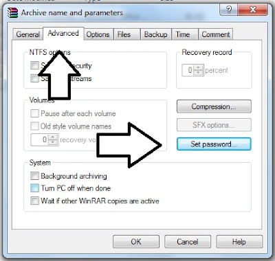 Selanjutnya akan muncul jendela dimana terdapat beberapa pilihan toolbar dan menu yang dapat anda pilih, tetapi kali ini pilih "Advanced" pada menu bar dan pilih "Set Password" untuk menambahkan password anda pada file yang anda kompres.