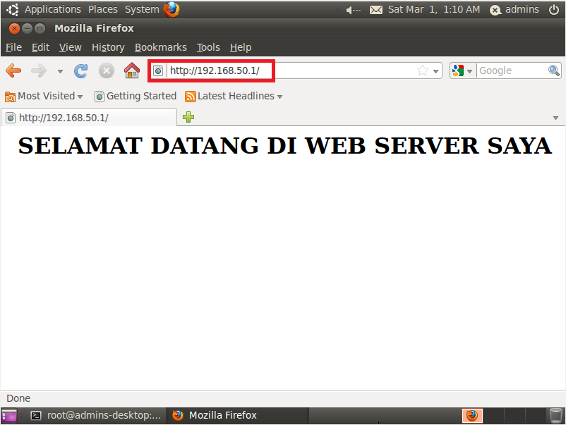 Setelah konfigurasi Web Server sudah dilakukan, selanjutnya silahkan ke browser di linux ubuntu, lalu ketik IP di bagian AddressBar pada browser :